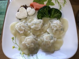 今回は、外出先で初めて犬用の餃子をお願いして、海も一緒に餃子を食べた。