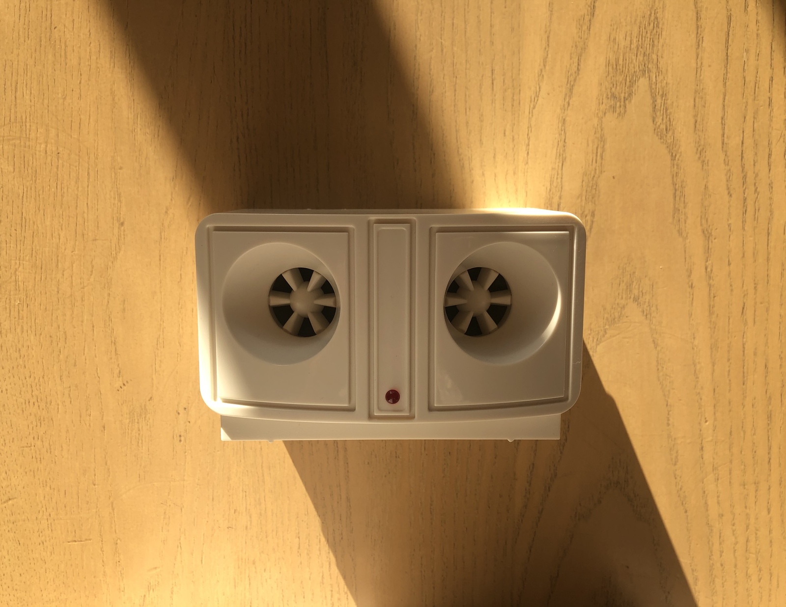 そこで、ネズミ除けのために何をしようかといろいろと調べた結果、嫌いな超音波を出すネズミ除けを買って試してみることにした。これは乾電池式なので、外にも置くことができる。