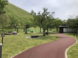 大室山は小さな休火山で、芝生に覆われた山なのだけど、その麓にさくらの里という場所があって桜が植えられた公園がある。そこに新しく無料のドッグランがオープンしていた。
